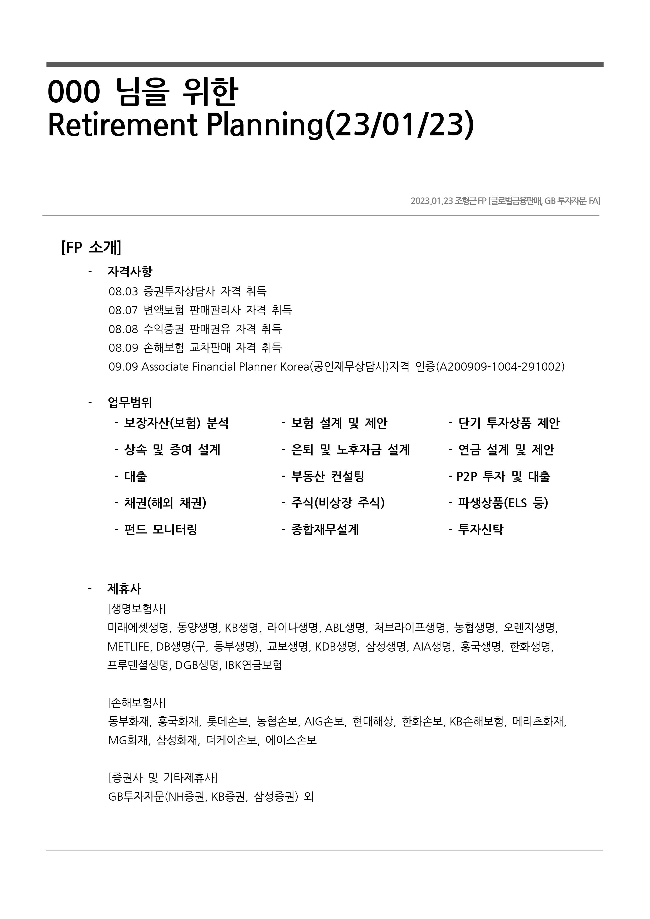 현재에 이르기까지 재무상담을 통한 자산컨설팅 업무를 진행하고 있습니다