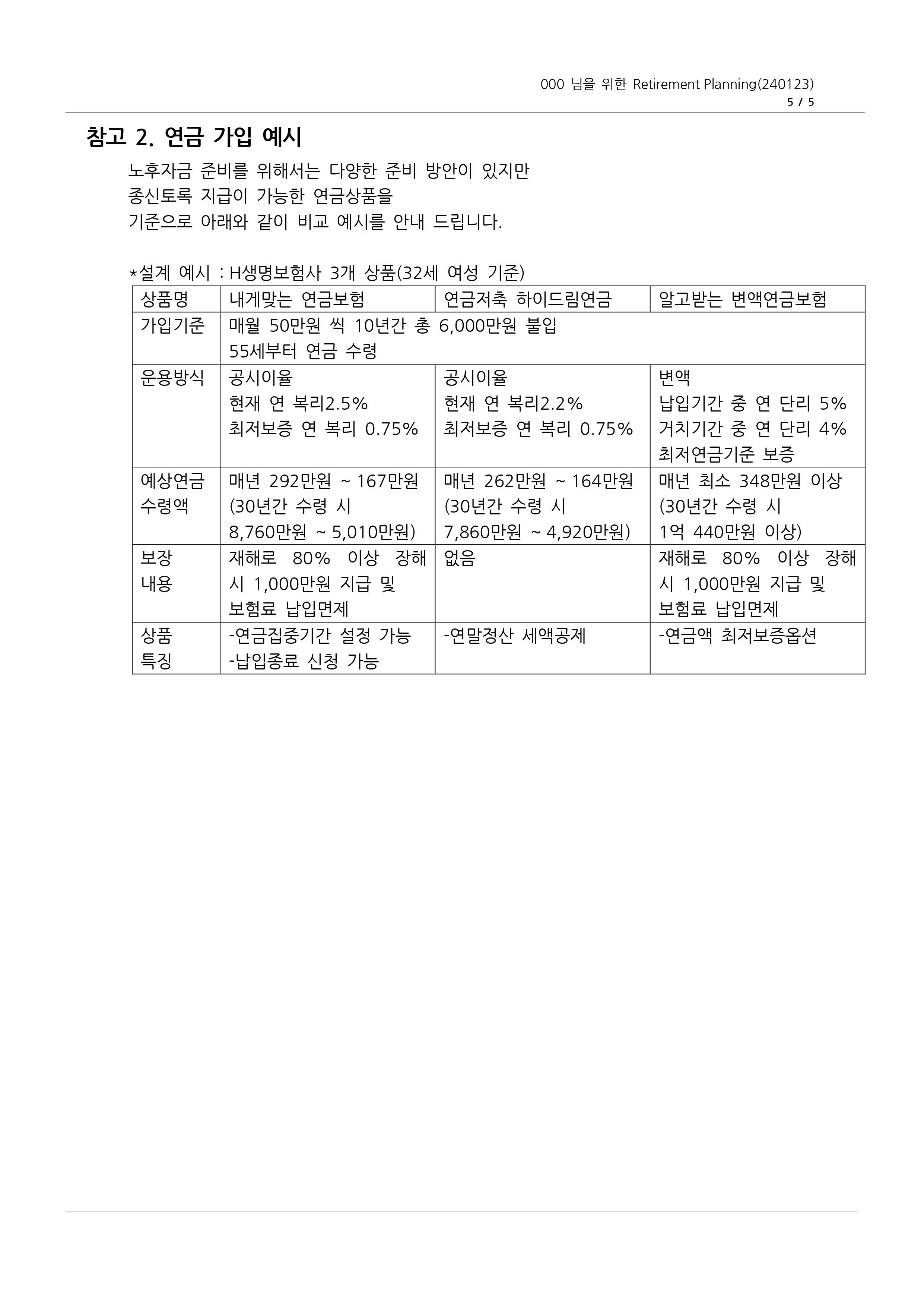 신청인의 은퇴 생활 목표 설정